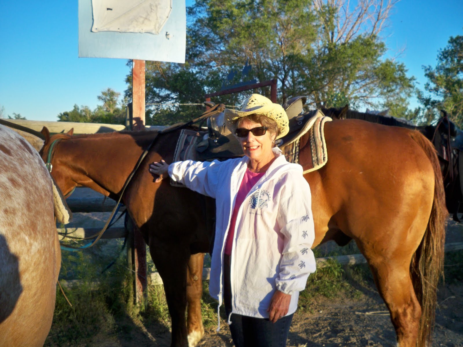 This Ranch/Resort was another reason we signed up to do this caravan,they offered horseback riding!! After setting up the trailer we signed up for the Sunset Ride and were told to meet at the stables around 6:45. 12 persons awaited (9 airstream) excitedly with cameras ready to flash pictures,as it was a perfect evening for the 1 1/2 hour ride.By 7:30 we were still standing around waiting for the retired rodeo cowboy to saddle up 8 more horses(his helper never showed so it took a lot longer) The ride originally would be from 7-8:30 taking in the sunset from canyon plateau-we didn't get underway until 8:35 and the sun had already set,dark by 9:15pm. Down into the canyon on a narrow trail with horses going nose to tail -we traveled in the dark,didn't see much,very scary and dangerous . Back by 10pm,glad to be off the horses.All the pictures taken were before we left. So much for horseback riding experience!!